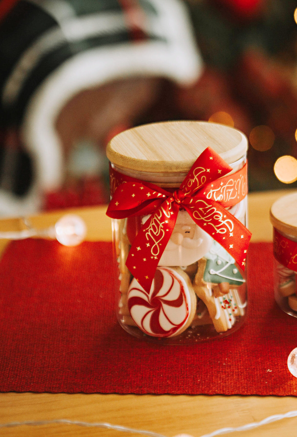Vidro com tampa de bambu, em média 16 unidades de Biscoitos Amanteigados de Baunilha decorados mistos de 5cm, sendo 7 com decoração elaborada e demais com detalhes em glacê e confeitos.